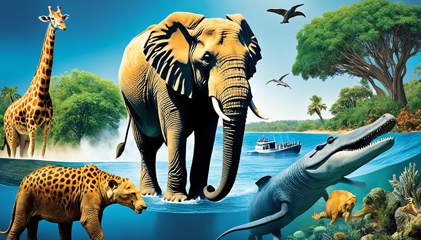 Earth’s largest animals vary in size and shape, each one impressive. The African elephant and the blue whale are among the biggest. The African elephant is strong and graceful, known for its long trunk and tusks. The blue whale, the biggest animal, is a gentle giant, over 100 feet long.