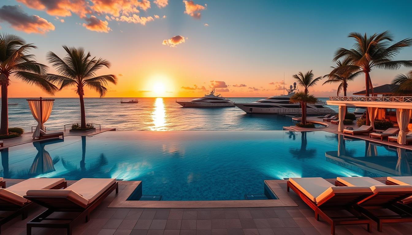 When you arrive, you’ll find tranquility and indulgence. Imagine island hopping to secluded luxury resorts. Each offers unique amenities and experiences. You can explore hidden coves, dive into the underwater world, or relax on white sands.