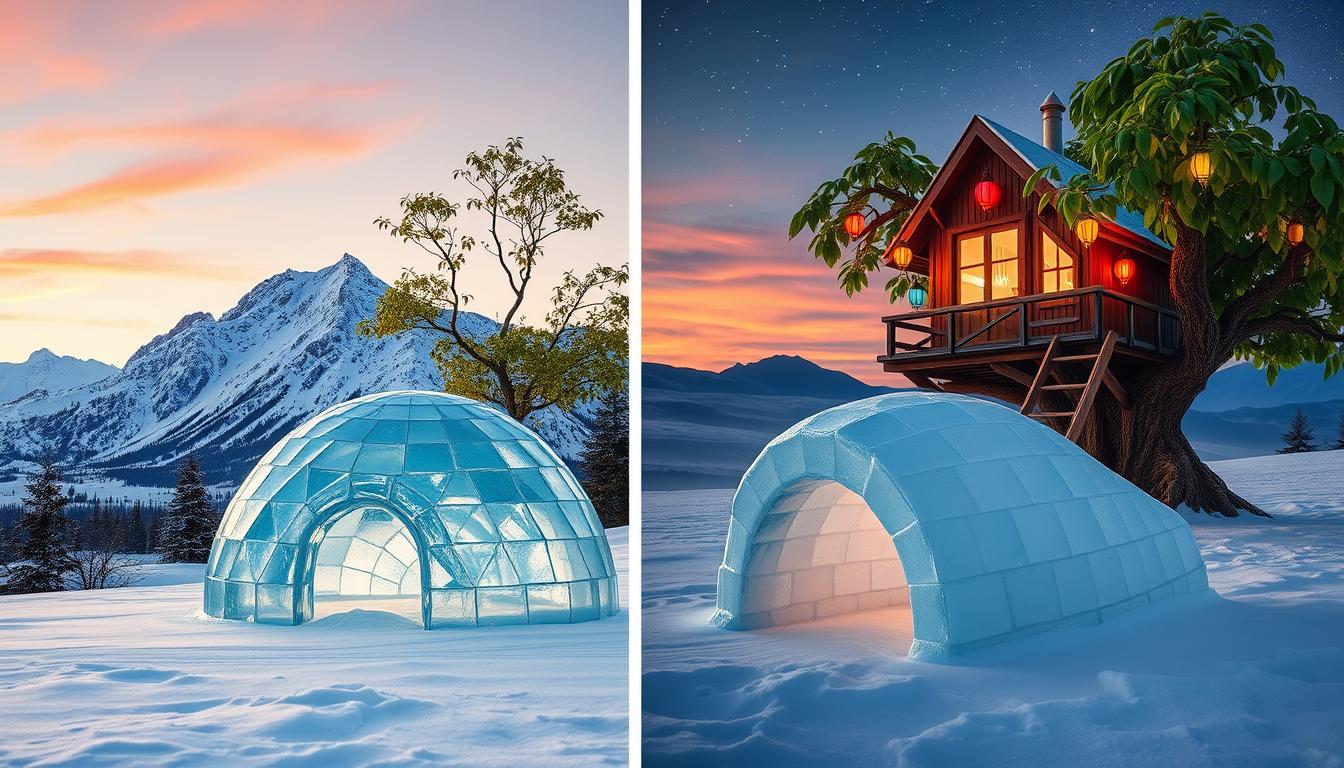 Imagine staying in a glass igloo and watching the stars. Or, picture waking up in a private beach hut to the ocean’s sounds. These spots are perfect for a romantic escape.
